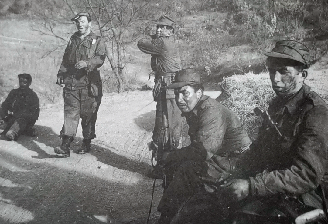 1952年11月,英军威灵顿公爵团的一支巡逻队在抵达防线前端后立即结束巡逻,返回主阵地。拍摄照片的记者也很有意思,别的军队记者拍的照片都是挑选神采风扬的那种,这个英国记者却拍了个满脸沮丧、尽显疲态的照片。