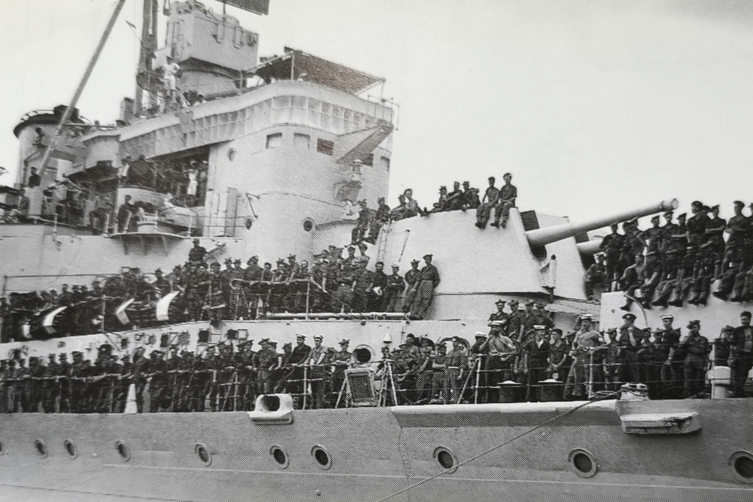 英军乘坐“锡兰”号巡洋舰抵达釜山