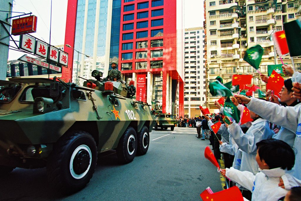 ▼1999年12月20日,中国人民解放军驻澳门特区部队进驻澳门,受到澳门群众的热烈欢迎。