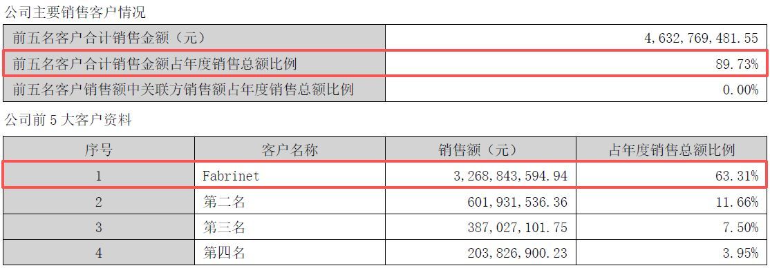 虽然营收体量庞大,但《每日经济新闻股票配资平台股票》记者注意到,天孚通信报告期内客户结构相对集中——公司期内来自前五名客户合计销售金额占年度销售总额的比例达89.73%,较2024年的86.8%进一步上升。其中,公司第一大客户(Fabrinet)的销售额达32.68亿元,占年度销售总额的比例达63.31%,较2024年的61.69%亦进一步上升。