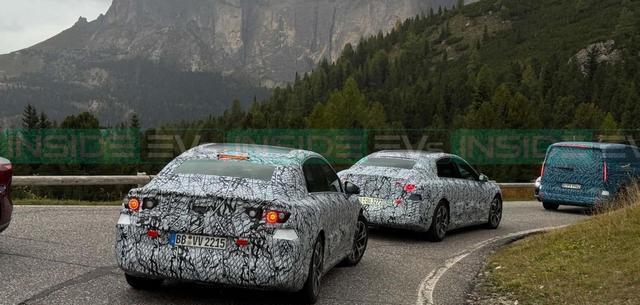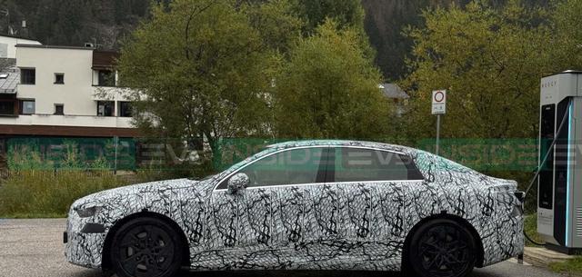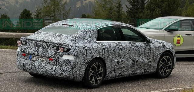 原型车已换上量产车身,比例一目了然。与当前W206燃油版C级相比,电动版的前悬更短,A柱明显前移,使驾驶员视觉重心更靠前,接近前驱轿车的姿态。尽管未保留经典燃油车的长引擎盖设计,但整体线条依然协调流畅,更像一款“放大版CLA”——前部更挺拔,车尾线条快速收敛,兼顾动感与优雅。